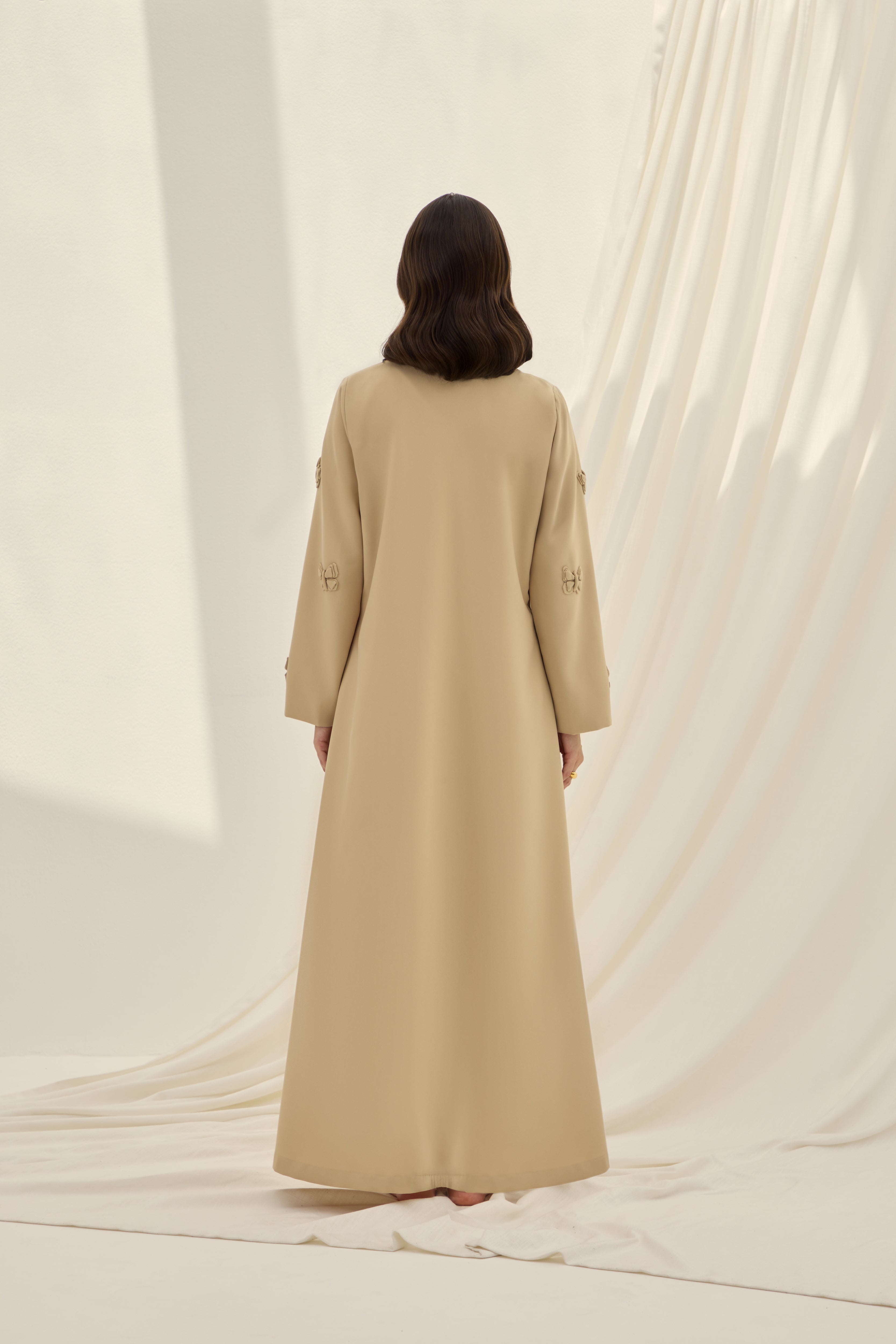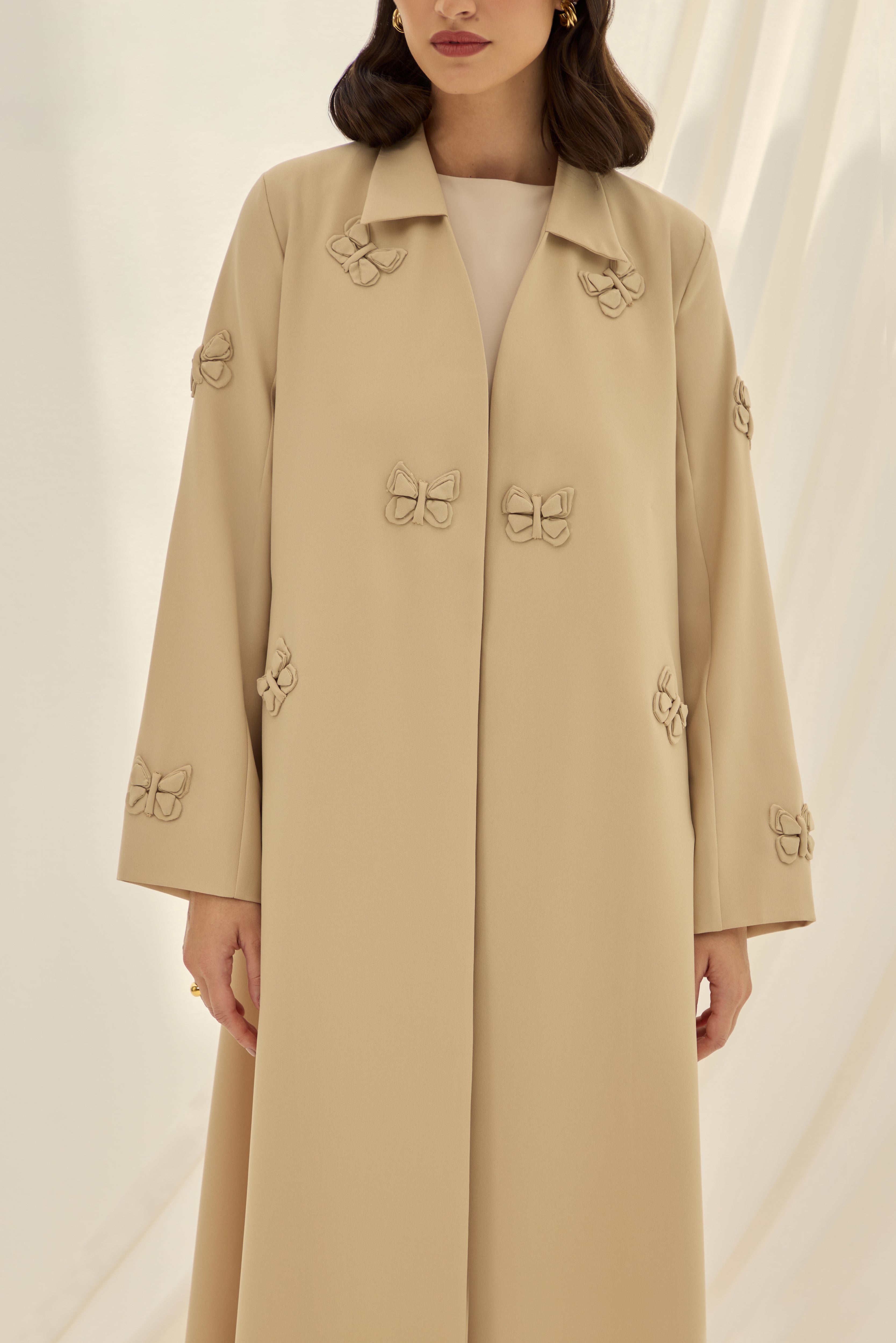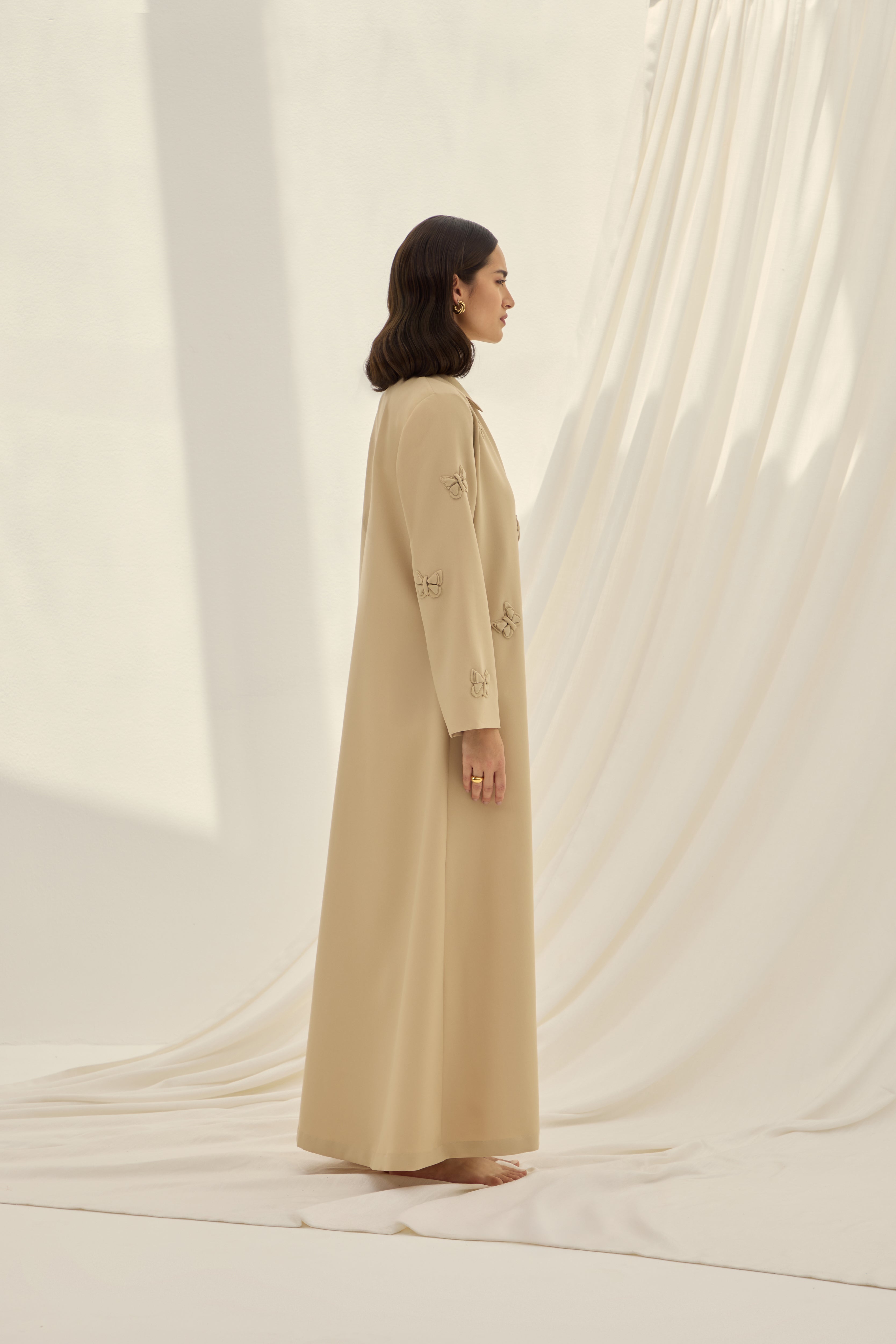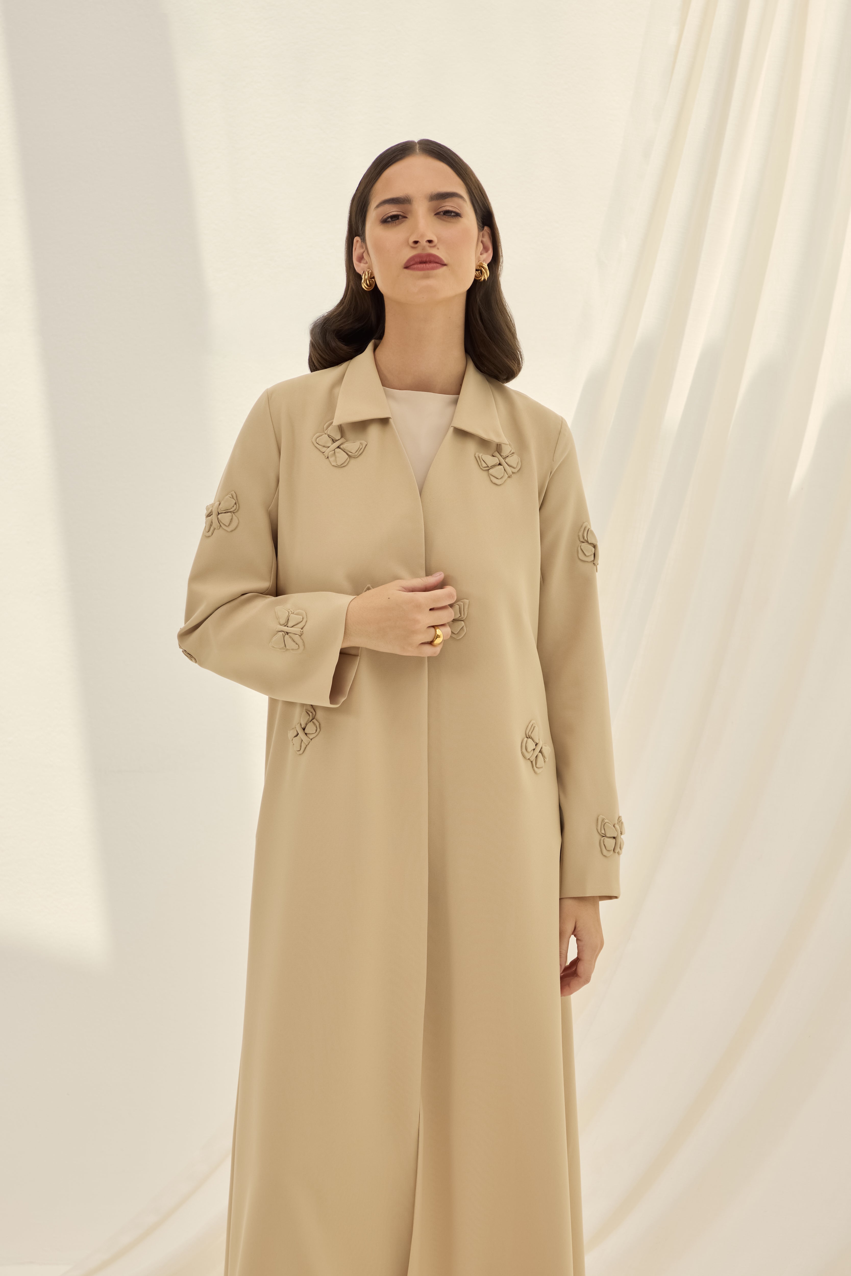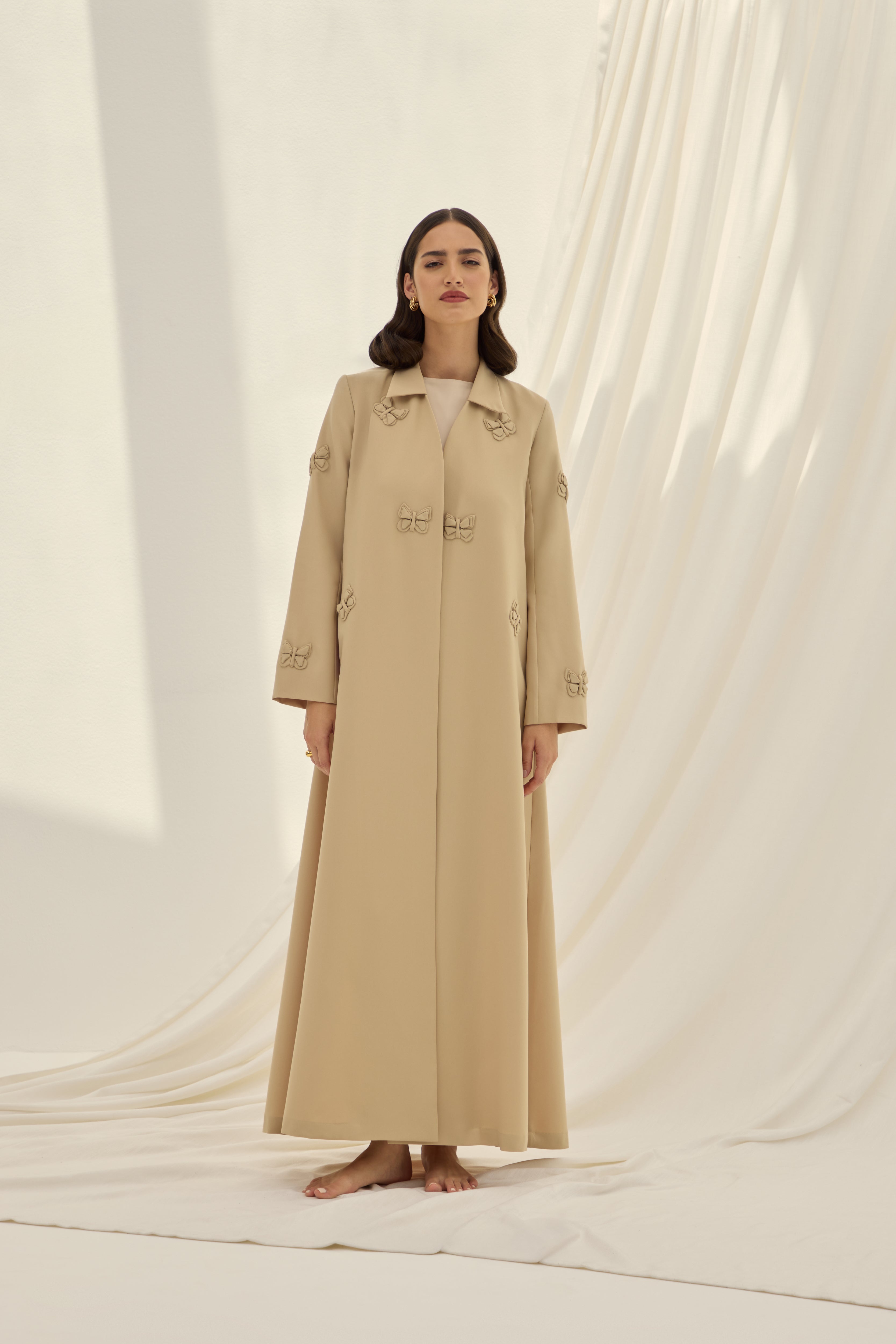 Grace in every detail — Whispered Knots features sculpted 3D bows adorning the front and sleeves, adding dimension to its soft sand hue.